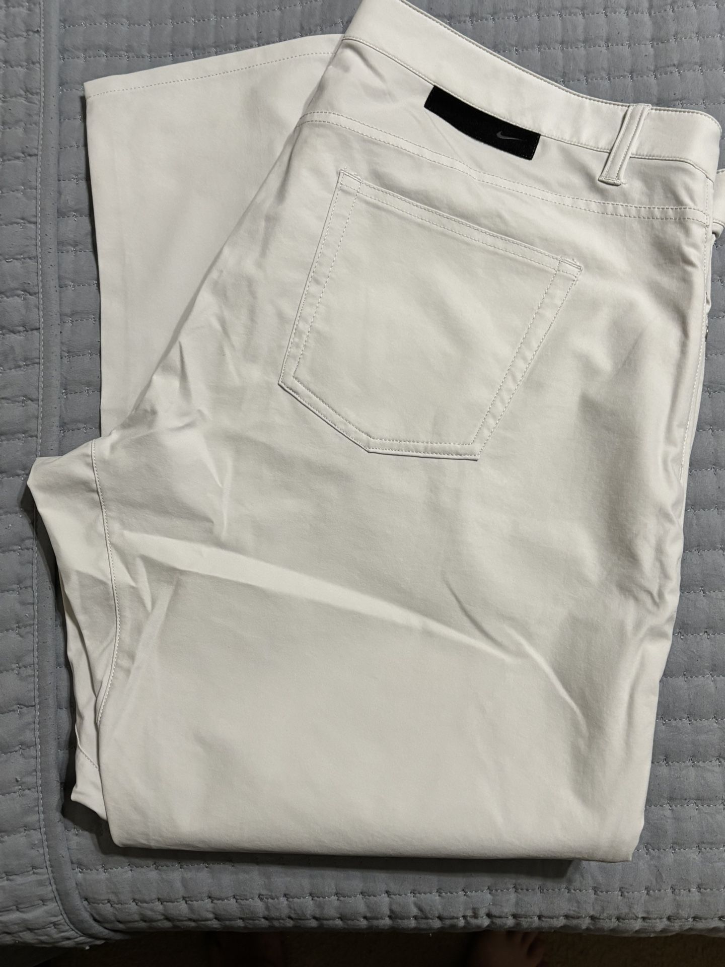 | Product Features | Nike 5 Pocket Men's Golf Pants Slim Fit, Dri-Fit, White, Size 40x30NEW WITH NO TAGS. NEVER WORN | ||