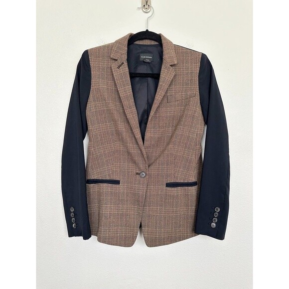 - Women >Jackets & Coats >Blazers & Suit Jackets > Club Monaco Glen Plaid Mixed Media Blazer Brown Black Workwear Women's 0 NEW